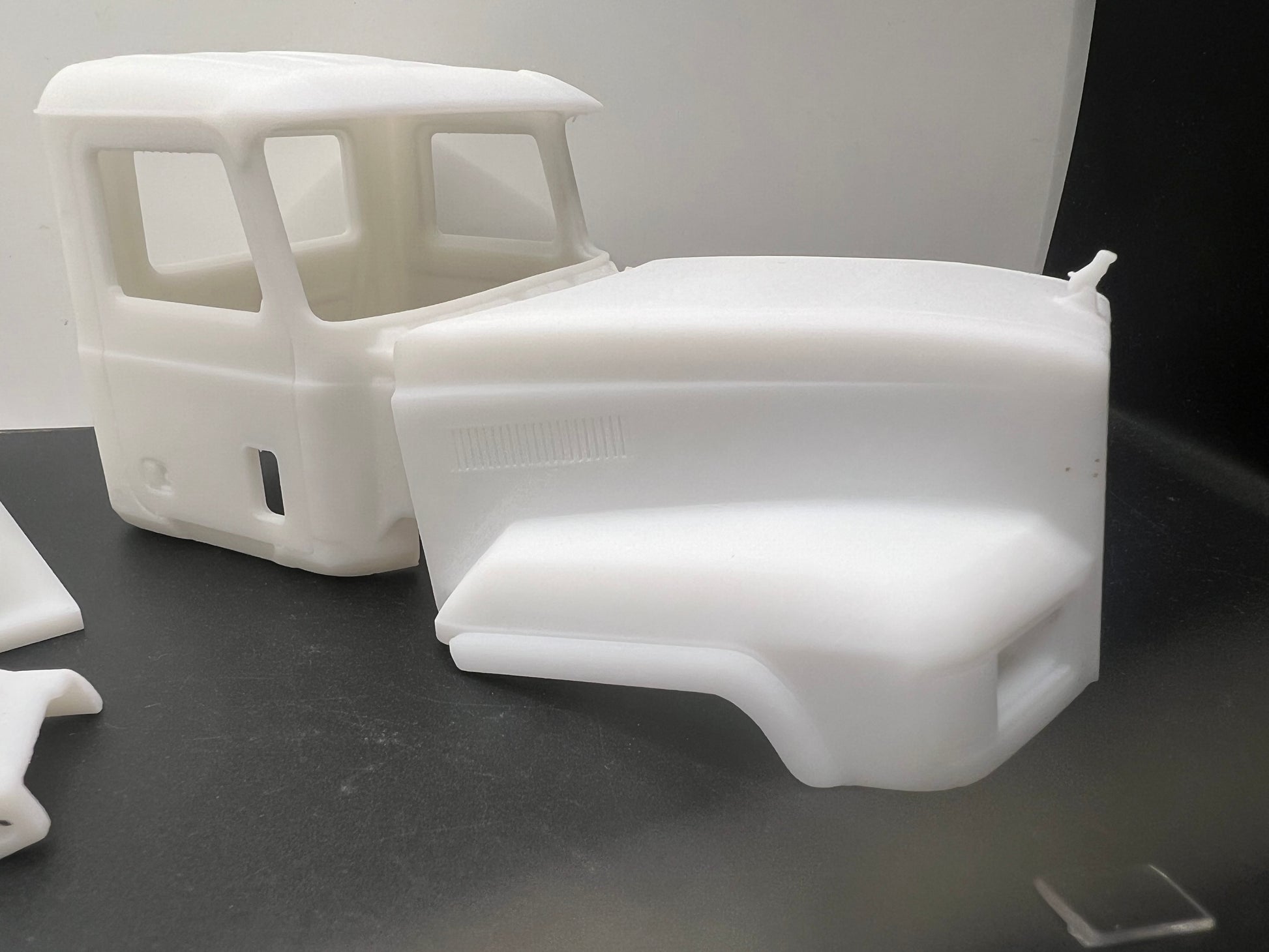 Cabine, calandre de style standard , intérieur, pare-brise, rétroviseurs, pare-chocs, extrémités d'aile arrière, lentille de phare
