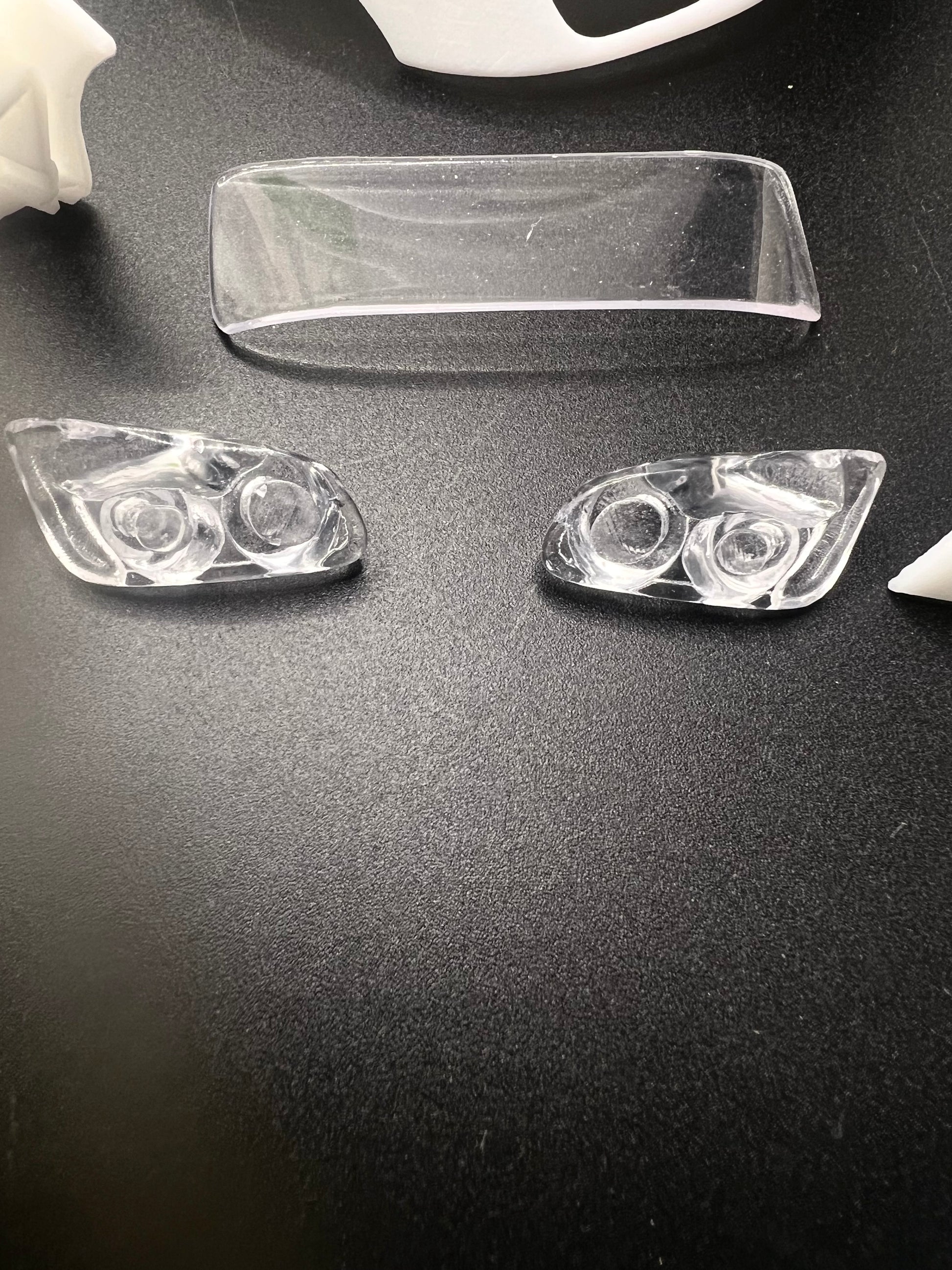 Cab, 72" high roof sleeper , interior, windshield, headlight lens, standard hood, bumper, sunvisor, side skirts.