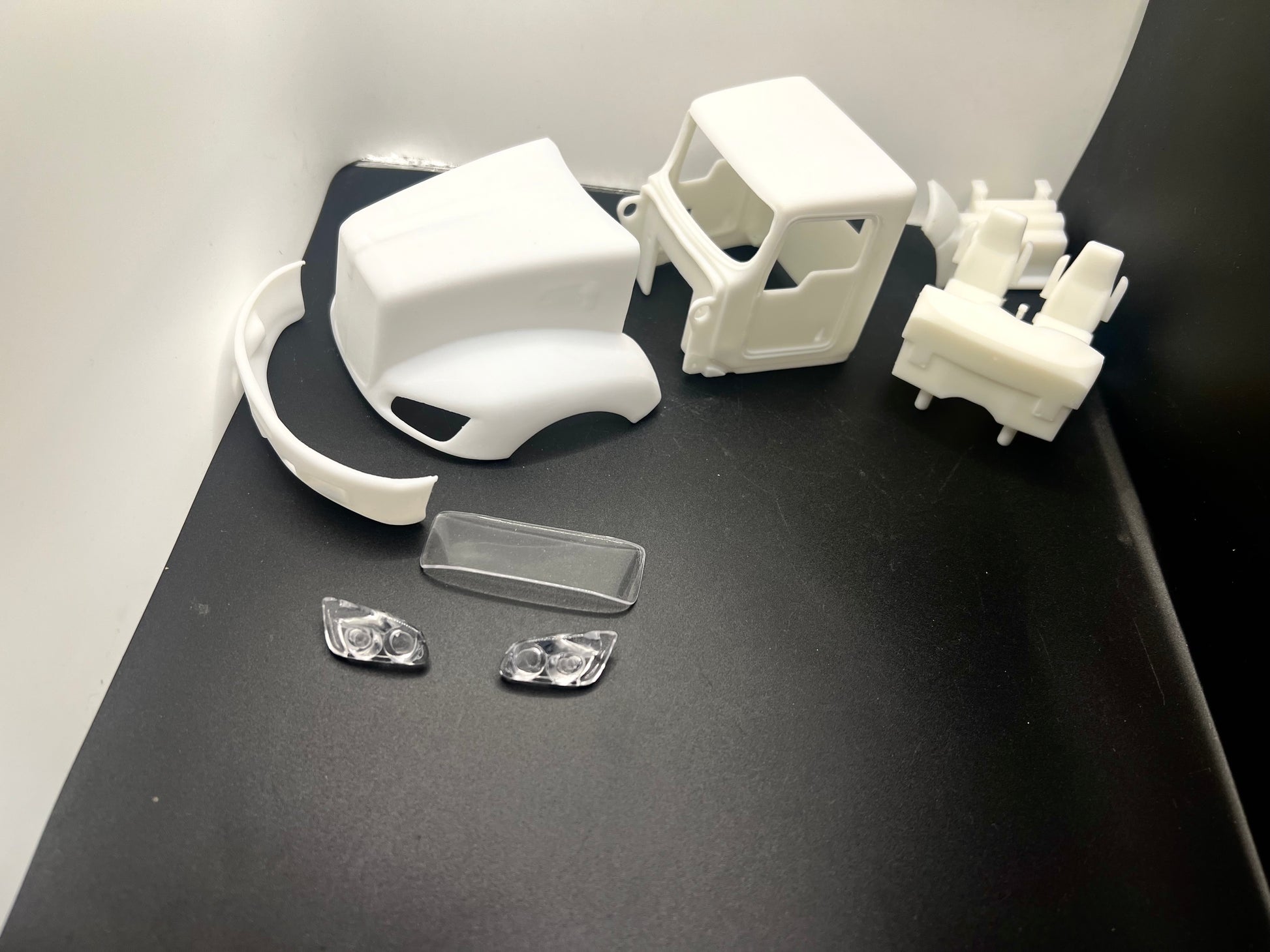 Standard day Cab, hood, bumper, windshield, interior, headlights, sun visor,