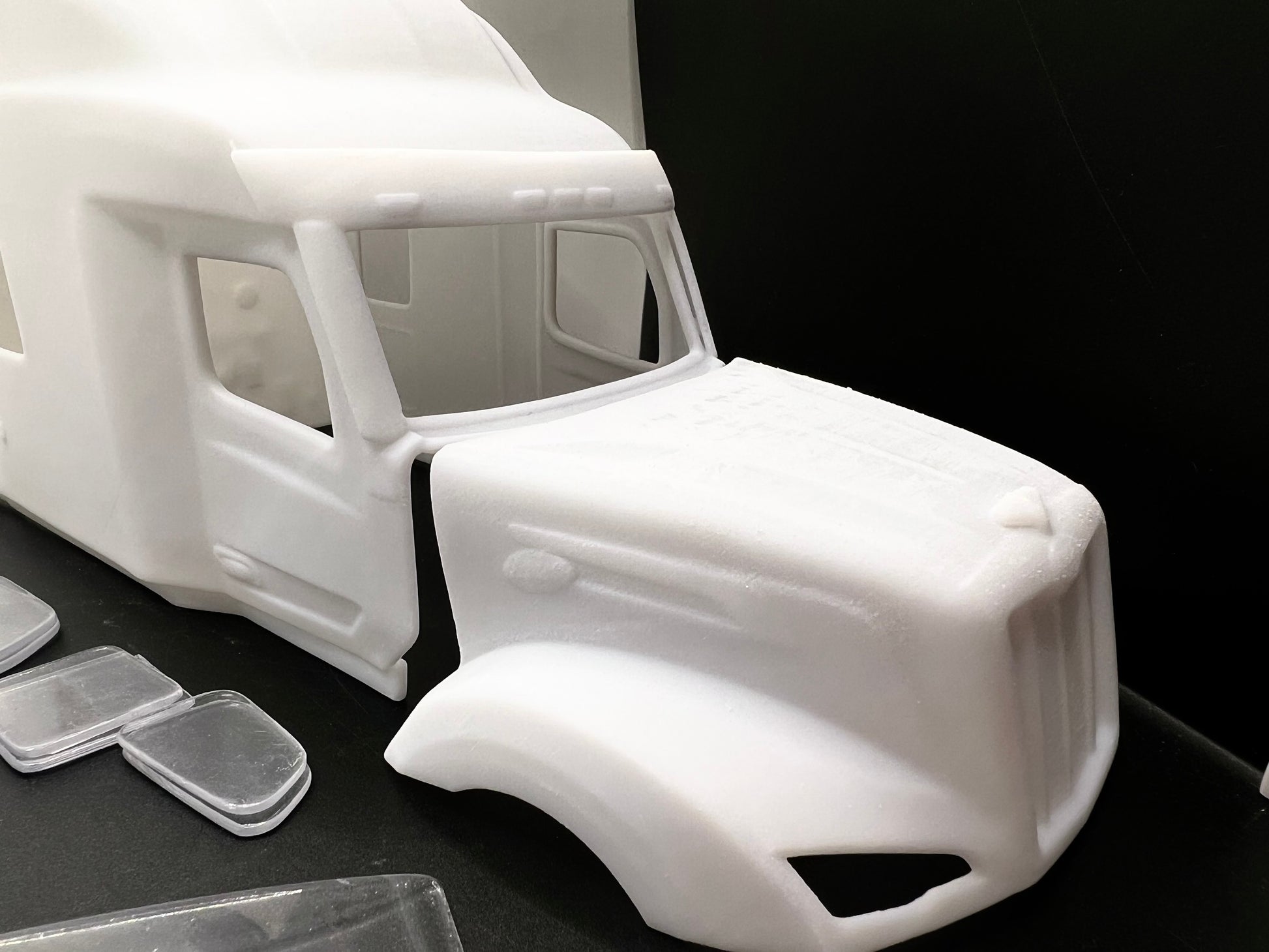 Sleeper/driver cab, interior, windshield, headlight lens, hood, bumper, side skirts